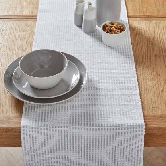 Made with absorbent cotton, this table runner is finished in a ribbed grey and can be safely cleaned in the washing machine.