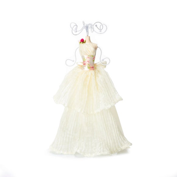 Available to buy online today, this white ball gown jewellery mannequin offers a glamorous place to hang your trinkets from to keep them organised. Hang your jewellery from this decorative stand Featuring a mannequin dressed in a flowing, white ball gown, this decorative jewellery holder offers hooks to hang your necklaces & bracelets from to avoid them from becoming tangled. Perfect as an added decoration for your bedroom & to keep your surfaces free from mess, this white jewellery mannequin will help you organise your belongings while adding a glamorous twist to your room. Please note: This product is subject to stock availability. Ask Dunelm a question Brand Dunelm Care instructions Wipe clean with a soft cloth Colours available One colour available in White Material Fabric, plastic, metal Pack size One jewellery mannequin Pattern Patterned Sizes available One size available in Dia 16cm (6") x H 35cm (14") ...