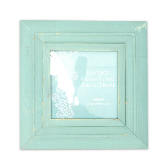 Create an understated vintage look with this attractive distressed green photo frame from the Vintage Green collection.? Displays a 4" x 4" photo? Vintage inspired design Featuring a distressed green finish & the capacity for one 4" x 4" photograph of a treasured memory, this wooden photo frame is ideally suited to a vintage style interior. Why not combine this vintage style photo frame with other similar frames & decorations from the Vintage Green Floral Collection to create a fantastic feature gallery. This photo frame can hold one 10cm x 10cm (4" x 4") photo. Ask Dunelm a question Brand Dunelm Care instructions Wipe clean with a soft cloth Colours available One colour available in Green Material Wood, glass Pack size One photo frame Sizes available One size available in 17cm x 17cm (7" x 7") ...