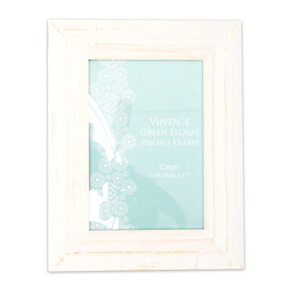 Bring a touch of vintage style into the home with this aged-effect cream photo frame from the Vintage Green Floral Collection.? Displays one 5" x 7" photo? Vintage inspired design On its own this photo frame is a perfect option for those who want to bring a subtle vintage feel to their decor. Alternatively it could look great as part of a vintage theme & would also add interest to a more modern & minimal interior. Featuring a washed-out, aged & distressed look, similar frames are available in a range of sizes & finishes making this a perfect mix & match item. This photo frame can hold one 13cm x 18cm (5" x 7") photo. Ask Dunelm a question Brand Dunelm Care instructions Wipe clean with a soft cloth Colours available One colour available in Cream Material Wood, glass Pack size One photo frame Sizes available One size available in 25cm x 20cm (10" x 8") ...
