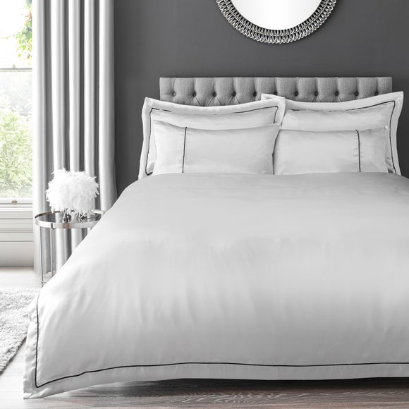 Add a touch of sophisticated glamour to your bedroom with our elegant Kris oxford pillowcase in silver. Decorated with a stylish black piping detail contrasting against the silver oxford edging, Kris is crafted from a durable satin face & a polyester-cotton blend on the reverse offering comfort & longevity with easy-care properties for quicker drying & easy ironing.