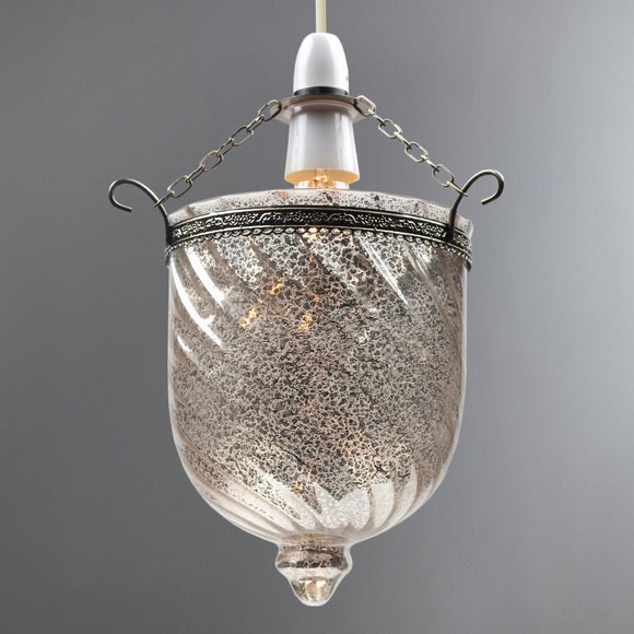 This grey ceiling pendant is designed with speckled, mercury coloured glass & has chains that hang from the ceiling fitting base, which holds the light fitting. Please note that this product requires one bulb. 60 Watt BC (B22) GLS is recommended. Bulbs are not included with this product. ...