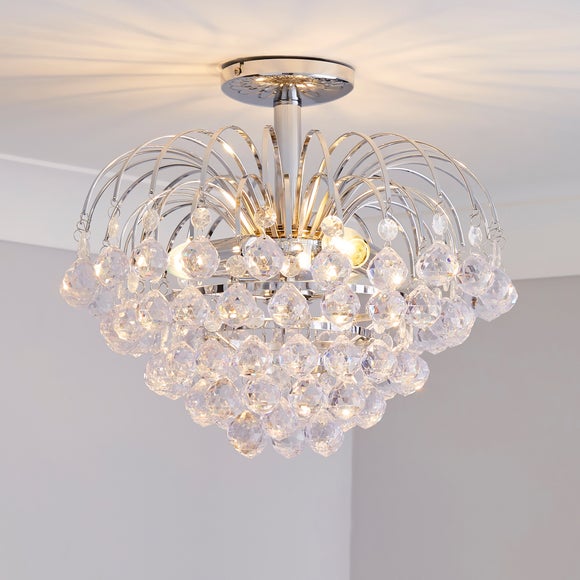 Introduce a sophisticated look into your home with this Acrylic Ice Drop Light that features beautiful cascading crystal drops that frame the bulb. Simple to attach & care for, this light fitting will sure bring a touch of luxury to your home & create a bold statement to any living space. Click [here] (http://www.dunelm.com/category/home-&-furniture/home-furnishings/lights/light-bulbs) to view our range of bulbs. This ceiling fitting comes with a 2 year guarantee. Click [ here ] (https://www.dunelm.com/info/help/terms-&-conditionslighting-guarantee ) to view our terms & conditions.