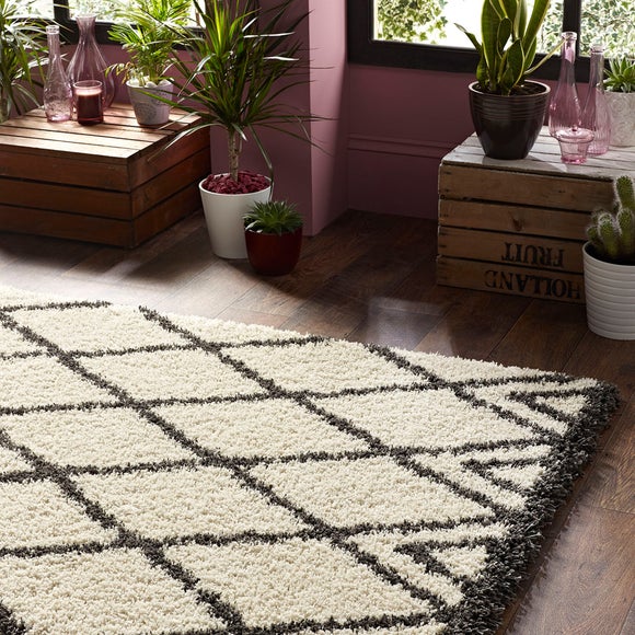 Add a textured look to your home decor with the luxury Shaggy Diamond Rug. Featuring a timeless diamond design & deep textured ...
