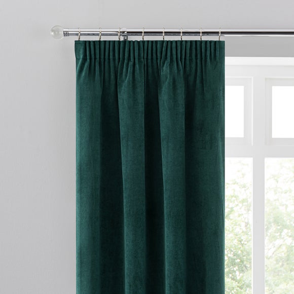 Crafted in a rich jade green colour way, these elegant pencil pleat curtains are fashioned from beautifully soft matt velour fabric for a gorgeous texture. The traditional pencil pleat header creates a wonderful undulating drape & gives these curtains a sophisticated edge. Fully lined for enhanced privacy & insulation, these curtains are plain in design to effortlessly complement a wide range of decorative styles. Available in a selection of widths & drops to suit your requirements. Please note: these curtains are sold as a pair.