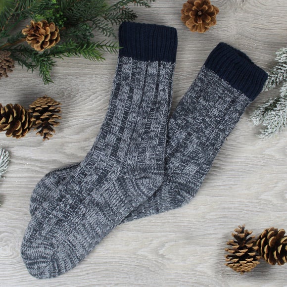 These Chunky Knit Socks are fitted with a warm lining, making them the perfect pair for the cooler months & feature a charming grey & black design. The slip resistant tread on the sole of these socks ensures safe use on multiple home surfaces. ...