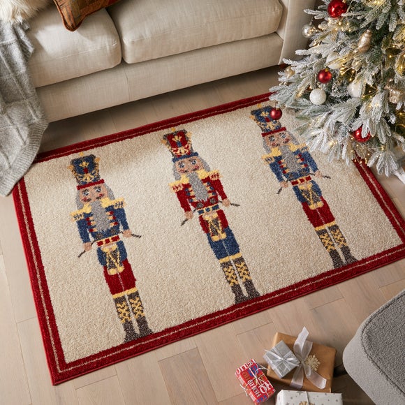Add the festive feeling into your home with our new range of Christmas Runners. Welcome your friends & families with our Traditional Nutcracker design. In low-profile polypropylene our Nutcracker Rug is perfect for protecting floors from festive guests. We recommend using with an Anti-Slip Mat to keep Santa on his feet when he's dropping off your presents. This is a hard wearing machine made rug. When opening, re-roll your rug pile out & leave in a warm room for 24 hours before putting in place, this will help to reduce wrinkles & curling from packing. A small amount of fibre loss is normal on a new rug. Do not pull any loose threads, please cut them carefully with scissors to remove. Avoid prolonged exposure to direct sunlight as this may cause fading of the colour. Turn your rug regularly to ensure even wear & reduce pressure marks from furniture. Before using any cleaning products on your rug, test on an inconspicuous area first to ensure it does not affect the colour. Clean spills immediately by blotting with a clean dry white cloth