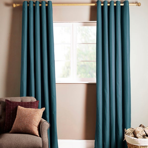 Available in a selection of sizes, this pair of teal blue curtains are designed with a high quality thermal lining, ideal for retaining warmth in the cooler months. Complete with a modern eyelet header, these curtains feature a plain texture & smooth matte finish. ...