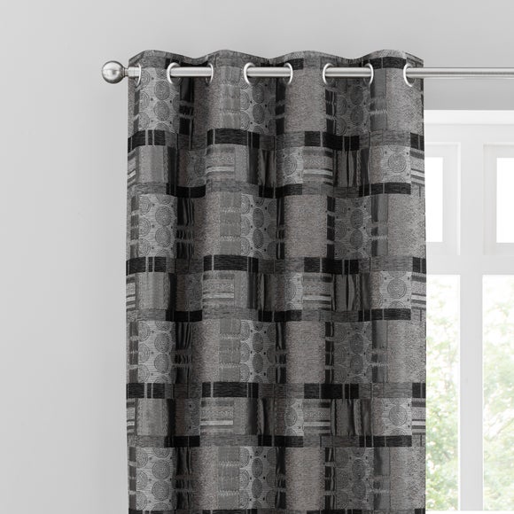 Featuring a patchwork design in a stunning black & silver colour way, this stylish fabric is crafted from a chenille & taffeta mix & is suitable for a variety of projects. Available by the metre. Please note: Suitable for use in upholstery when an additional fire retardant treatment has been applied, ask in store for details.