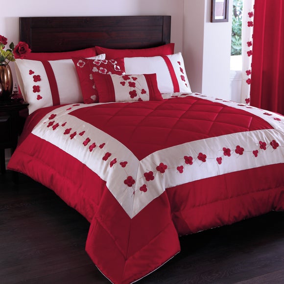 Enhance the look of your entire bedroom with our colourful Red Blossom Duvet Cover Set, available to buy online today in a range of sizes. Bring a floral feel to your room with our Blossom Duvet Cover Set Develop a new look in your whole room with our blossom duvet cover set, complete with duvet cover & pillowcases. Featuring red flowers in a range of hues bursting from light green leaves & stems, this duvet cover is set on a cream background creating a plain backdrop for the vibrant flowers. The combination of the colours on the duvet cover provide a partnership that will enhance the feel of your room, with the intricate flowers creating bursts of colour, the green stems drawing the eye over the duvet cover & neutralised by the delicate cream background.A cotton set for a touch thats as soft as it looks Made entirely from 100% cotton, this set will give you the upmost comfort whilst providing a long lasting durability. Machine washable, this pretty set will look as good as new every time & its easy care properties mean you can use it all year round. Stuff with luxurious duvets, thick or thin & make sure you have the pillows that are just right for you style of sleeping to help get the best nights sleep. Available in a range of sizes, you can chose the perfect set for your bedroom, whether you decide to have it for a guest room or have a little bit of luxury for yourself. Brand: Dunelm Colours available: One colour available in Red Composition: 100% cotton Drying instructions: Tumble dry on a low heat setting Ironing instructions: Iron on a medium heat setting