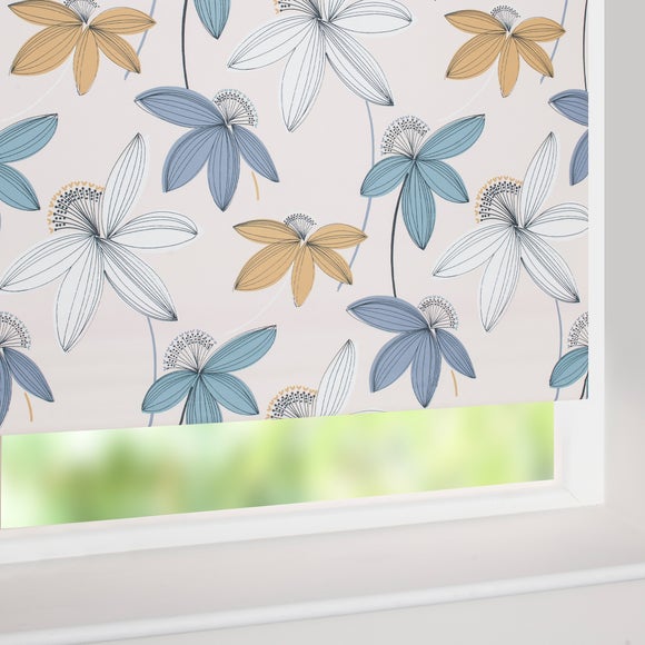Available to buy online in a range of sizes, our duck egg roller blind has a bold, summery floral design that will instantly brighten your decor. Our floral roller blind will make a practical alternative to curtains Adorned with a bold, lively floral design in shades of yellow, white & duck egg blue against a natural backing, our colourful blind has a fresh, summery appeal that will brighten your interior beautifully. Effortless to assemble with the included fittings, & offering a smooth rolling motion that is simple to control, our summer blind is a practical & convenient choice for your window. Ideal for a variety of windows from the kitchen to the bathroom, or matched with curtains in the lounge or study to help keep light from disturbing your home, our duck egg blue blind makes a spectacular modern choice for your home. Choose from our selection of sizes to find the ideal fit for your window today. Safety is a vital aspect of our design; consequently all of our blinds include a cleat to keep loose cords away from children. It is important to note that brackets allow for top, side or face fixing & as a consequence the blind may be slightly reduced in width & height. Please note: This product is subject to stock availability. Ask Dunelm a question Blind type Roller blind Brand Dunelm Colours available One colour available in Duck Egg (Blue) Composition 100% polyester Material Polyester Pack size One blind with fixtures & fittings Pattern Patterned Sizes available Drop 137cm (54") x Widths available 61cm (24"), 91cm (36"), 122cm (48"), 153cm (60"), 183cm (72") Style Floral Washing instructions Sponge clean ...