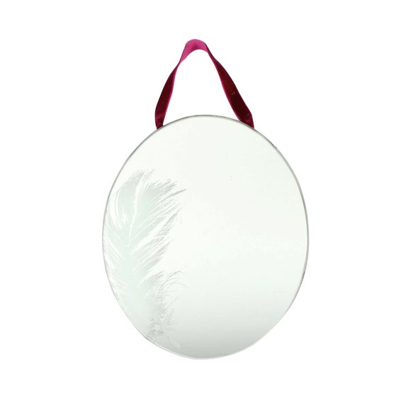 Add a stylish touch to your home with our feather patterned mirror, available with a red ribbon for easy hanging in your home. • Feather patterned mirror• Red hanging ribbon• Made from glass Featuring a beautiful feather pattern on a rounded design & a stylish appearance, our glass mirror is a welcoming addition to any home, instantly finding its place in your bathroom or bedroom. Available with a thick red ribbon for easy hanging & a hard-wearing glass construction, our round decorative mirror offers long lasting durability & practicality for your home. Easy to care for, our hanging mirror can be easily wiped clean to offer a fresh setting all year round. Brand Dunelm Care instructions Wipe clean with a soft cloth Colours available One colour available in Silver Material Glass Pack size One mirror Sizes available One size available in 19cm x 25cm (7" x 10") ...
