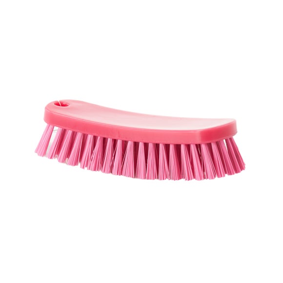 Available to buy online today in a choice of colours, this plastic scrubbing brush has been designed to ensure effective & efficient cleaning.A simple cleaning brush for your home Easy to grip with its smooth, rounded design, this hand held scrubbing brush is comfortable to use & simple to control to ensure hours of your day arent wasted. Ideal to use in the kitchen for cleaning potatoes & carrots, or else for removing marks from surfaces in the home, this colourful handheld brush will help remove stubborn dirt with ease using its tough yet flexible bristles. With a variety of bright colours to choose from, why not inject a touch of fun into your cleaning chores. Please note: This product is subject to stock availability. Brand: Dunelm Care instructions: Hand wash in warm soapy water Colours available: Lime (Green), Pink, Red, Teal (Blue)