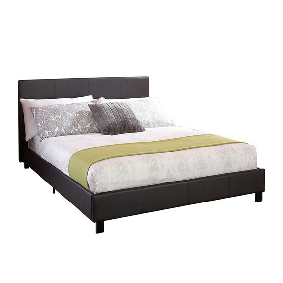 Featuring a light distressed finish, this grey two-seater tub chair is upholstered in faux leather with dark hardwood legs.[ Click here] (https://www.dunelm.com/infodocs/downloads/ Furniture-Sizing-Guide.pdf) to check out our handy sizing guide to help you find out if you’ll be able to get your new furniture into your home.