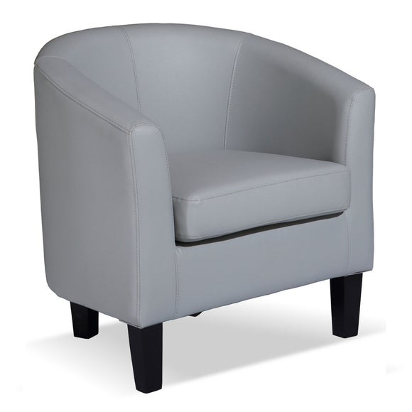 Featuring a classically designed curved back & padded seat cushion, this stylish tub chair will add a contemporary touch to your decor. Upholstered in classic black, smooth faux leather fabric, this part-assembly tub chair is crafted with four sturdy, plastic legs. Please note, unfortunately we cannot deliver this item to the Channel Islands.[ Click here] (https://www.dunelm.com/infodocs/downloads/ Furniture-Sizing-Guide.pdf) to check out our handy sizing guide to help you find out if you’ll be able to get your new furniture into your home.