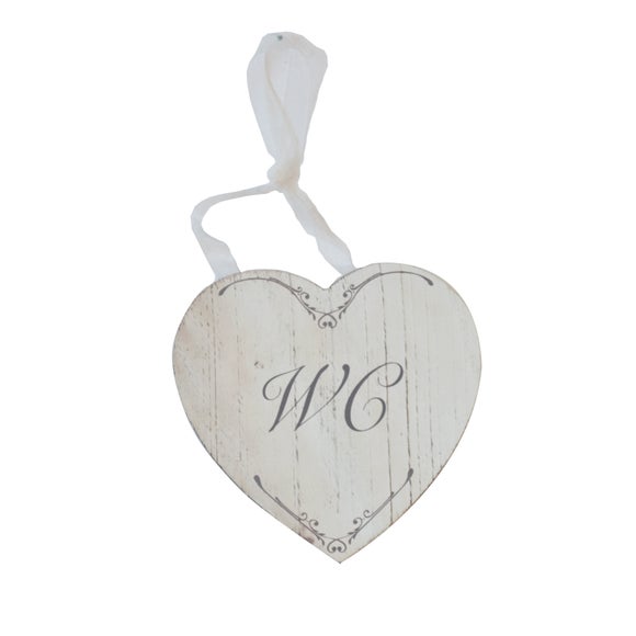 Available to order online now, our delightful hanging 'WC' plaque will add a vintage touch to your bathroom decor. Our charming wooden sign brings femininity to your bathroom Our hanging wooden sign gives a delightful feminine touch to your bathroom or lavatory door. This charming heart shaped plaque features a dainty white ribbon & bears the letters 'WC' in swirling lettering. Ideal for hanging on the back of your door, on a handle or on your wall, this hanging heart will add a touch of glamour to your room. Our bathroom plaque has a vintage cream colouring which will work well with any neutral colour scheme from our various bathroom collections. Please note: This product is subject to stock availability Brand Dunelm Care instructions Wipe clean with a soft cloth Colours available One colour available in White Material Wood, ribbon Pack size One hanging plaque Sizes available One size available in 15cm x 15cm (6" x 6") ...