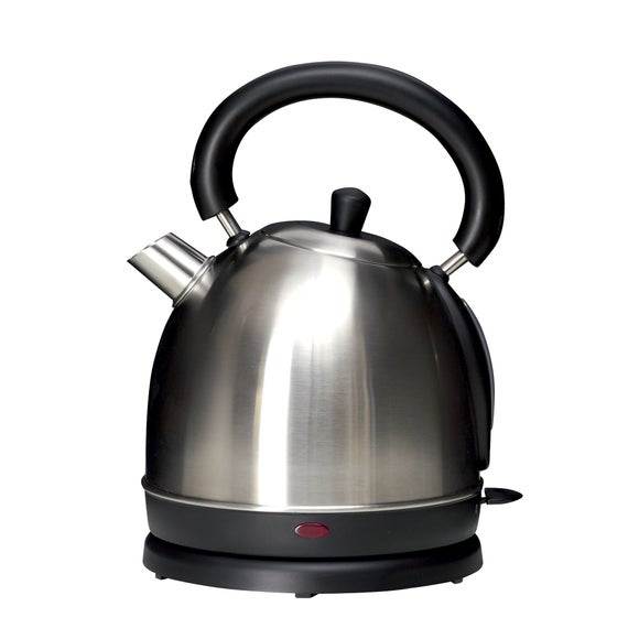Add a classic touch to your kitchen with our traditionally shaped cordless silver kettle, available to buy online today. Combine style & practicality for your kitchen with our silver traditional kettle With a traditional curved shape & a rounded large handle for safe & easy moving, our silver kettle will add a classic touch to your kitchen surfaces. Our cordless kettle features a water level gauge so that you can keep an eye on the amount that youre boiling to keep your energy & water costs down. With a removable water filter for easy cleaning, our stainless steel kettle has a rapid boil function so whether you need your wake up coffee in the morning or ready for a relaxing cup of tea when you get in from work, your drink will be ready in no time. Please note: This product is subject to stock availability. Ask Dunelm a question Brand Dunelm Capacity 1.8 Litre (3.1 pints) Care instructions Wipe clean with a soft cloth Colours available One colour available in Silver Material Metal, plastic Pack size One kettle Sizes available One size available in W 19cm (7") x L 29cm (12") x H 23cm (9") Wattage 3000 watts ...