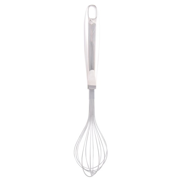 Whip up a cake mix or create the perfect sauce with this stainless steel whisk, a versatile & essential addition to your kitchen utensil set.? Stainless steel? Dishwasher safe The sleek & smooth rounded handle of this steel whisk will allow for plenty of comfort as you make light & easy work of creams, eggs, batters & sauces. This stainless steel whisk is also dishwasher safe for easy cleaning & has been designed with an opening in the handle so you can neatly hang it on a utensil rack. Ask Dunelm a question Brand Dunelm Colours available One colour available in Stainless Steel Dishwasher safe Suitable Material Stainless steel Pack size One whisk Sizes available One size available in 8cm x 25cm (3" x 10") ...