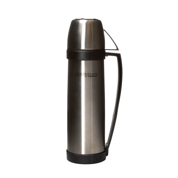 Now available to buy online, this Thermo Cafe 1 litre flask is an ideal way to transport your favourite warm beverage to enjoy outside in the cold. This stainless steel flask will keep your drink warm Featuring a large handle & lid that can act as a cup, this steel flask will allow you to enjoy a warm drink easily when on the go. With a large 1 litre capacity, this durable flask can hold enough beverages for your family. Made from sturdy stainless steel, our strong steel drinks flask is ideal for hikers, sports spectators & lovers of the great outdoors. Please note: This product is subject to stock availability. Brand Thermo Cafe Care instructions Hand wash in warm soapy water Colours available One colour available in Stainless Steel Material Stainless Steel Pattern Plain Sizes available One size available in W 14cm (6") x D 9cm (4") x H 32cm (13") ...