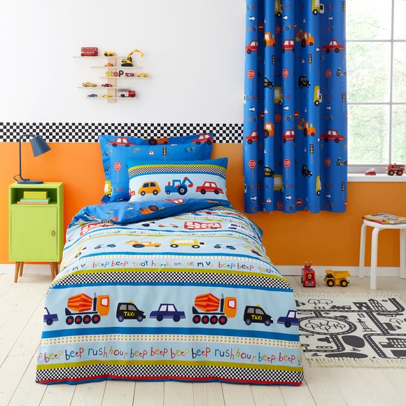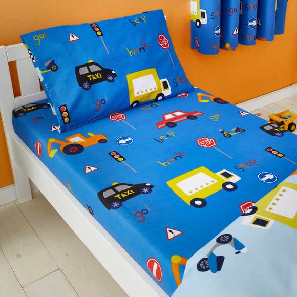 Crafted from soft & durable polycotton & available in a choice of sizes, our novelty duvet cover set features a reversible design with a vehicle pattern & comes with a coordinating pillowcase included. ...