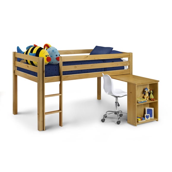 Features a comfy sleeping platform, complete with a desk to create a wonderful study area. If you want to maximise bedroom space while also giving your child a fun & comfortable sleeping area, then the Wendy Sleeper is for you. Made from high-quality pine with a natural finish, this cabin bed provides a study area & a sleeping area all in one. Fitting single mattresses only, the Wendy Sleeper comes with a pull-out desk on castors with a handy bookshelf on the end.** Please note: Mattresses for this bed frame should not exceed 6" in height due to EU legal requirements. Suitable for ages 6 years & over.** Please note, unfortunately we cannot deliver this item to the Channel Islands. ...