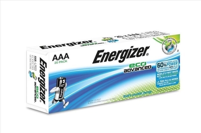 Lasts up to 80% longer Holds power up to 12 years Leak resistant The worlds 1st AAA battery made with recycled batteries Energizer Eco Advanced is our longest lasting Alkaline battery, providing up to 80% longer lasting energy, & the worlds 1st AA battery made with recycled batteries. Today, Energizer Eco Advanced contains 4% recycled material by total weight (which is nearly 10% of a key active ingredient)