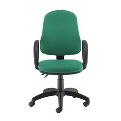 Comfy and versatile high back operator chair with a PCB mechanism and fixed arms. Deep cushioned seat and back upholstered in a tough wearing fabric. Permanent contact back (PCB) ensures user comfort for up to 8 hours. Green