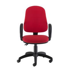 Comfy and versatile high back operator chair with a PCB mechanism and fixed arms. Deep cushioned seat and back upholstered in a tough wearing fabric. Permanent contact back (PCB) ensures user comfort for up to 8 hours. Red