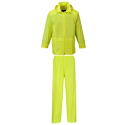 The Essentials Rainsuit offers excellent waterproof protection in one convenient set. This great value lightweight classic suit is a must have with its taped seams. Features include 2 pockets at front of Jacket & 2 side access pockets in the trouser, with a pack-away adjustable hood & a back vent for ventilation. The Jacket also has inner elasticated cuffs to prevent water entry & the trouser has a fully elasticated waistband & stud adjustable hem for an easy wear. This suit comes packaged together in one bag that is ideal for retail.. Elasticated cuffs. Eyelets & back vent. Fully elasticated waistb&. Stud adjustable hems. Front zip opening. Retail bag.2 pockets. Waterproof with taped seams. Pack away hood. Waterproof Garment. Jacket & trouser set. Texpel Splash. European zip. New colour