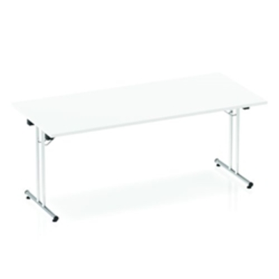 Impulse freestanding meeting table. Classic rectangular shape. Table folds easily for space efficient storage. Provides excellent team working environment. 25mm thick top. Attractive silver coated leg. 2mm abs protective edging.