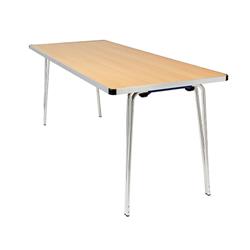 Durable aluminium legs and wipe clear solid top. Ideal for home, office and school. Lightweight and portable beech finished table. Manufactured from dent, scratch and moisture resistant plastic. Folding legs for easy storage.