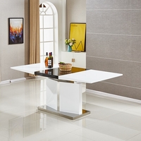 > The large extendable table is a modern & unique style of living. The Table Top: black glass locking mechanism, Chrome Legs simple for the column, Stand plate: Chrome elegant design & clean lines. The design of this very modern columns table with extension function seems positively futuristic. Extremely high quality materials & excellent workmanship of this product. The futuristic design of Frosted Glass Top Dining Table which is extendable gives this modern home decor & makes him a special highlight in every room. Bentini Extendable Black Glass Dining Table Width 160 to 200 cm Height 76 cm Depth 90 cm Table top: Black Top In Tempered Safety Glass Rectangular Frame: Chrome legs Dimensions: 160 to 200 cm Width x 76 cm Height x 90 cm Depth