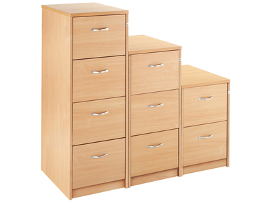 Deluxe filing cabinets available with 2, 3 or 4 drawers 25mm tops with 18mm side and back panels Easy glide drawers with 100% extension Anti- tilt drawers with 40kg weight loading capacity Accepts foolscap files Supplied with silver metal handles Lockable (2 keys supplied) Choice of size and colour 5 year warranty