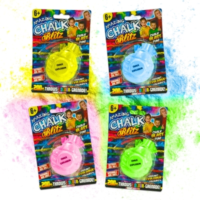 Kids will just love these fantastic chalk grenades with over 200 throws in them, each time they land or make impact, they produce a plume of colourful powder! Washable & safe, the chalk is similar to Holi powder thrown at festivals, & they're great for Bonfire Parties, where kids can get interactive with a safe, flame free explosion of colour. The powder is washable, but could stain certain fabrics, so absolutely for outdoor use only, & not for using in your best white clothes! Colours chosen at random. Ages 6+ years Outdoor use only Do not get wet Do not throw at face The powder is safe, non toxic, & washable, but may cause fabric staining!