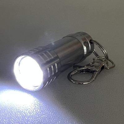 Funky little keyring torch with a brushed aluminium finish & with three bright white LEDs, measuring less than 5.5cm long, it is a super compact little thing that can be clipped to your keyrings, belt loops on trousers, or easily carried in a pocket. It even comes with batteries already loaded ready to go straight from the box. Brushed aluminium Battery powered 3 x L44 Buttoncells/AG13 batteries (included)53mm length x 16mm diameter (excluding keychain)