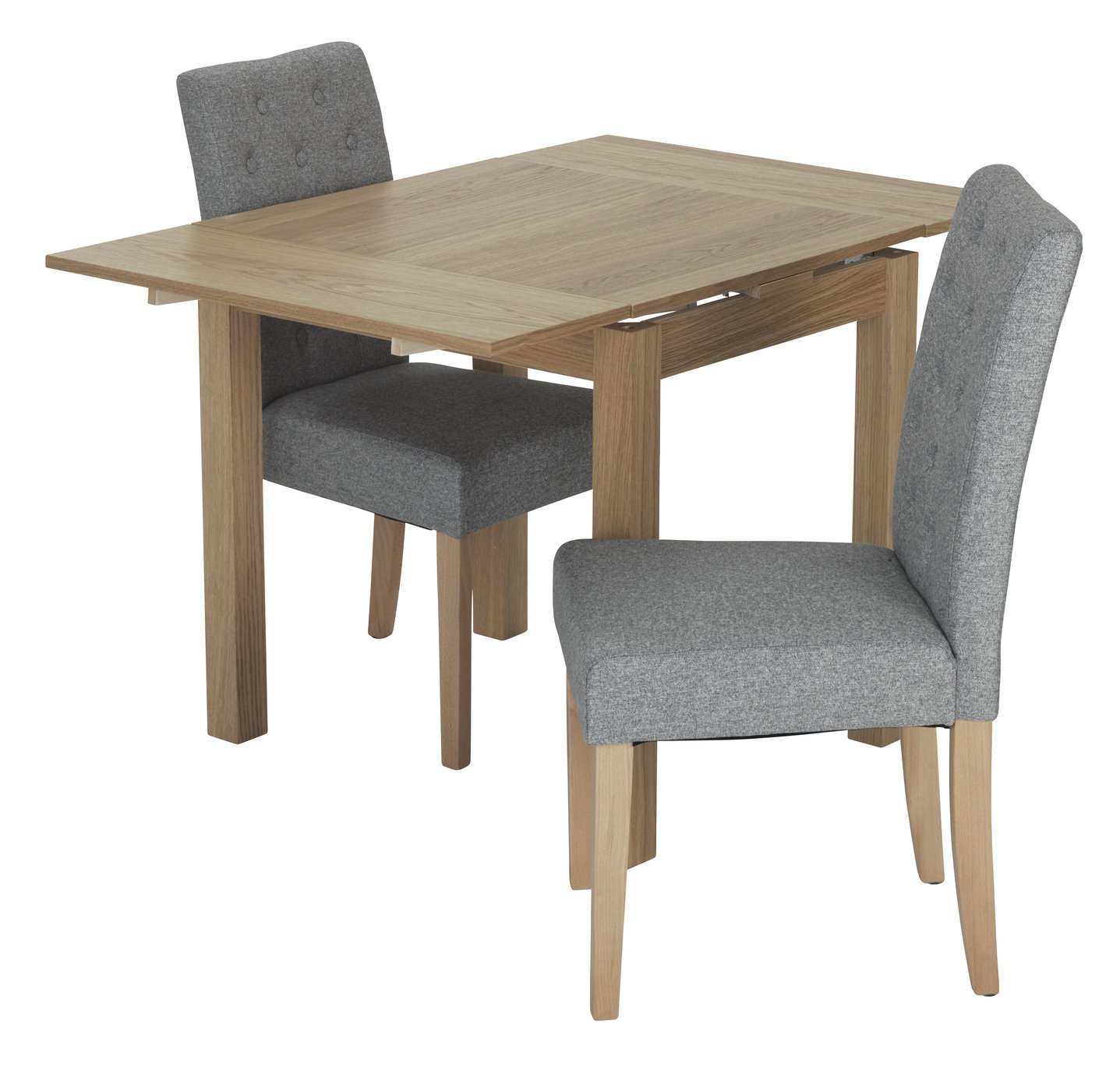 Set the table in seconds with the Clifton extendable dining table. Compact when out of use, it features an easy-glide end leaf extension. So, when youre getting ready for guests, simply slide the extra sections out & click them into place. Featuring a real wood veneer finish, the Clifton has a smooth, natural style & is easy to wipe clean after meals. The Clifton comes with 2 midback chairs with tactile grey tweed fabric & sturdy solid beech legs. Button back detailing makes the perfect finishing touch. Tuck into family feasts or linger over drinks with friends, at this delectable dining set. Part of the Clifton collection. Table: Table size H75.3, W80, L66cm. Size of table extended L120cm. Integral table extension. End leaf extension type. Real wood veneer table with real wood veneer legs. Wood veneer table top finish. Self-assembly