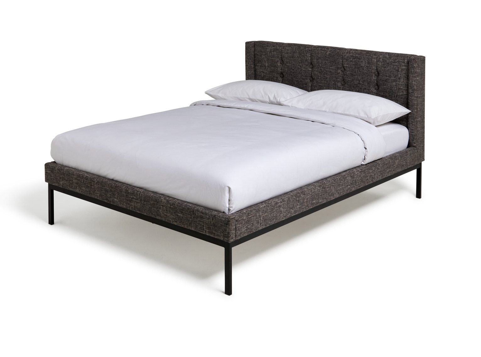 Long day&63; Dive into the retro vibes of the upholstered Cooper bed frame. Covered in a chunky monochrome tweed, its got a padded headboard with deep buttoning & a vertical panelled stitch design. Comforts built in. A fresh new take on the winged headboard, just add crisp linens & richly textured cushions for that perfect end-of-the-day getaway. Sprung wooden slats offer comfort & support for your mattress, plus breathability for a refreshed & healthy nights sleep. Part of the Cooper collection. Made from fabric. Fabric frame. Base with wooden slats. Size W132, L205, H100.5cm. Height to top of siderail 32.5cm. 29cm clearance between floor & underside of bed. Weight 35.3kg. Maximum user weight 140kg. Self-assembly
