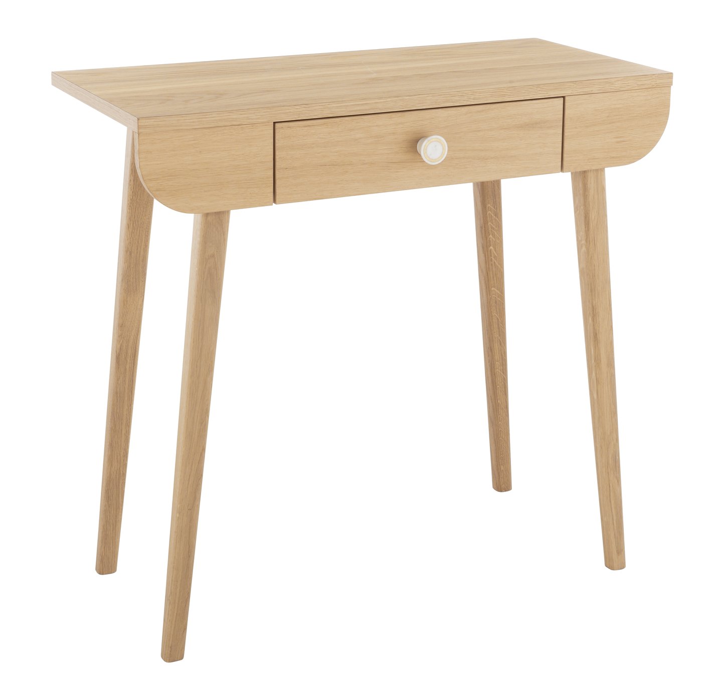 An original Habitat design, the Etta dressing table is perfectly suited to modern life. Offering generous surface space & a storage compartment, its perfect for placing make up, cosmetics & accessories in. Finished with an accent white marble & gold handle, theres plenty of space for placing a mirror on top. Perfect for small spaces, pair together with the Etta bedroom range for a streamlined look. Complementary dining & living room furniture is also available in the collection. Part of the Etta collection. Made from wood. 1 drawer with wooden runners. Self-assembly