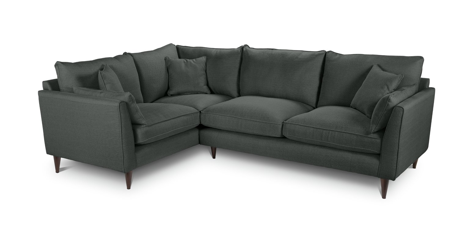 Turn a great living room into a grand one. The Habitat Hector corner sofa is made with smooth linen effect fabric. Slim arms are finished with bolster cushions to give you some extra squidge, & the seat has a foam fibre wrap. Blending classic & contemporary, Hectors finished with dark wooden legs in a sleek, tapered shape. The seat cushions are removable for easy care & there are extra scatter cushions included for an extra comfy finishing touch. This sofa comes with a 10 year frame guarantee. Well cover manufacturing faults on frames, feet, arms, internal springs or webbing. We can arrange a repair, replacement, exchange or refund. Part of the Hector collection.