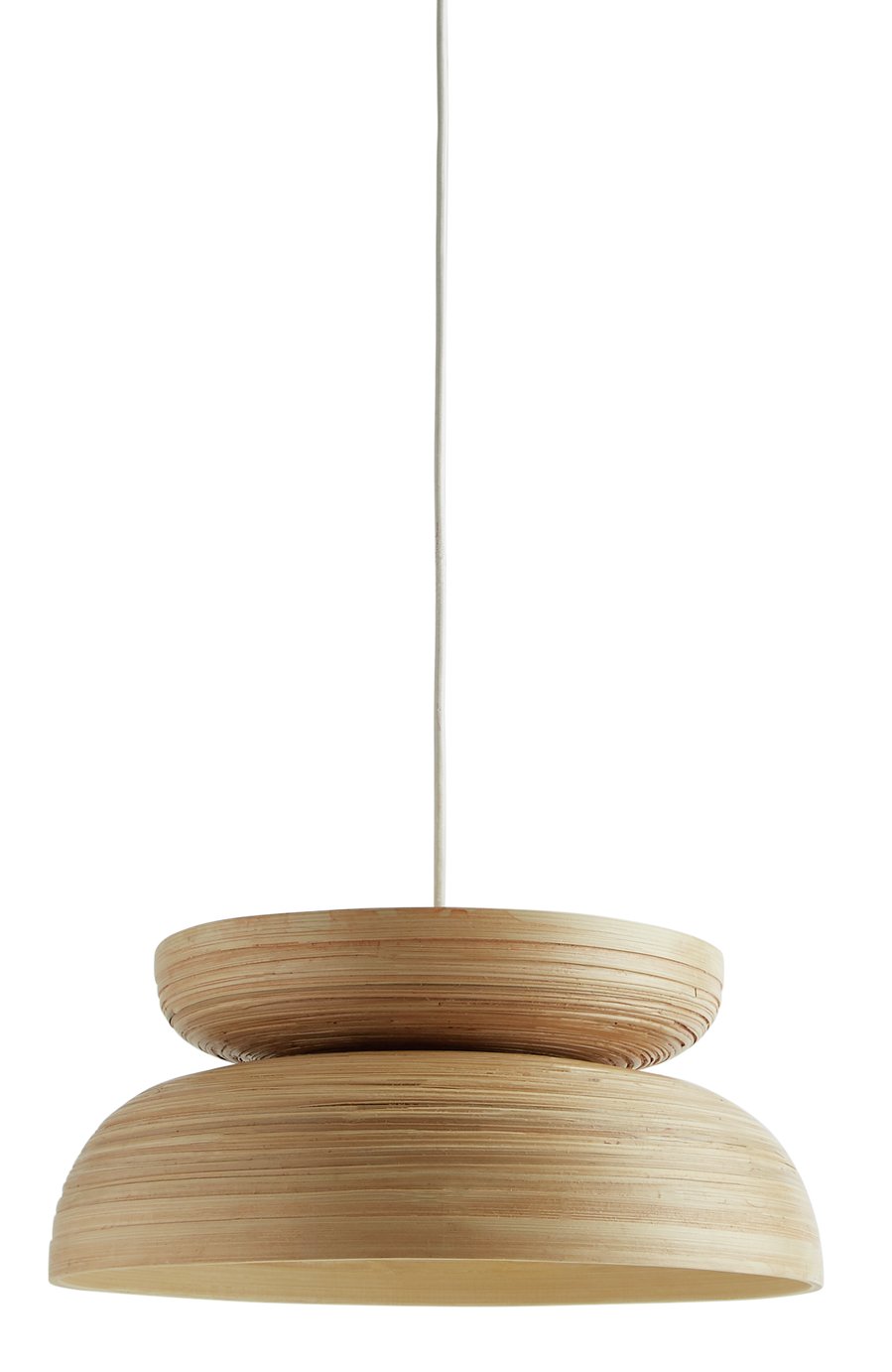 The Bamboo large natural easy-to-fit ceiling shade is a fun & visually striking design made from h&-spun bamboo & painted by h&. Designed by our in-house team & made in Vietnam, the twin bowl-shaped shade has a textured exterior & a smooth, spun bamboo interior. Perfect for hanging in multiples above a kitchen island or low over a dining table. Made from bamboo. Recommended wattage: 10