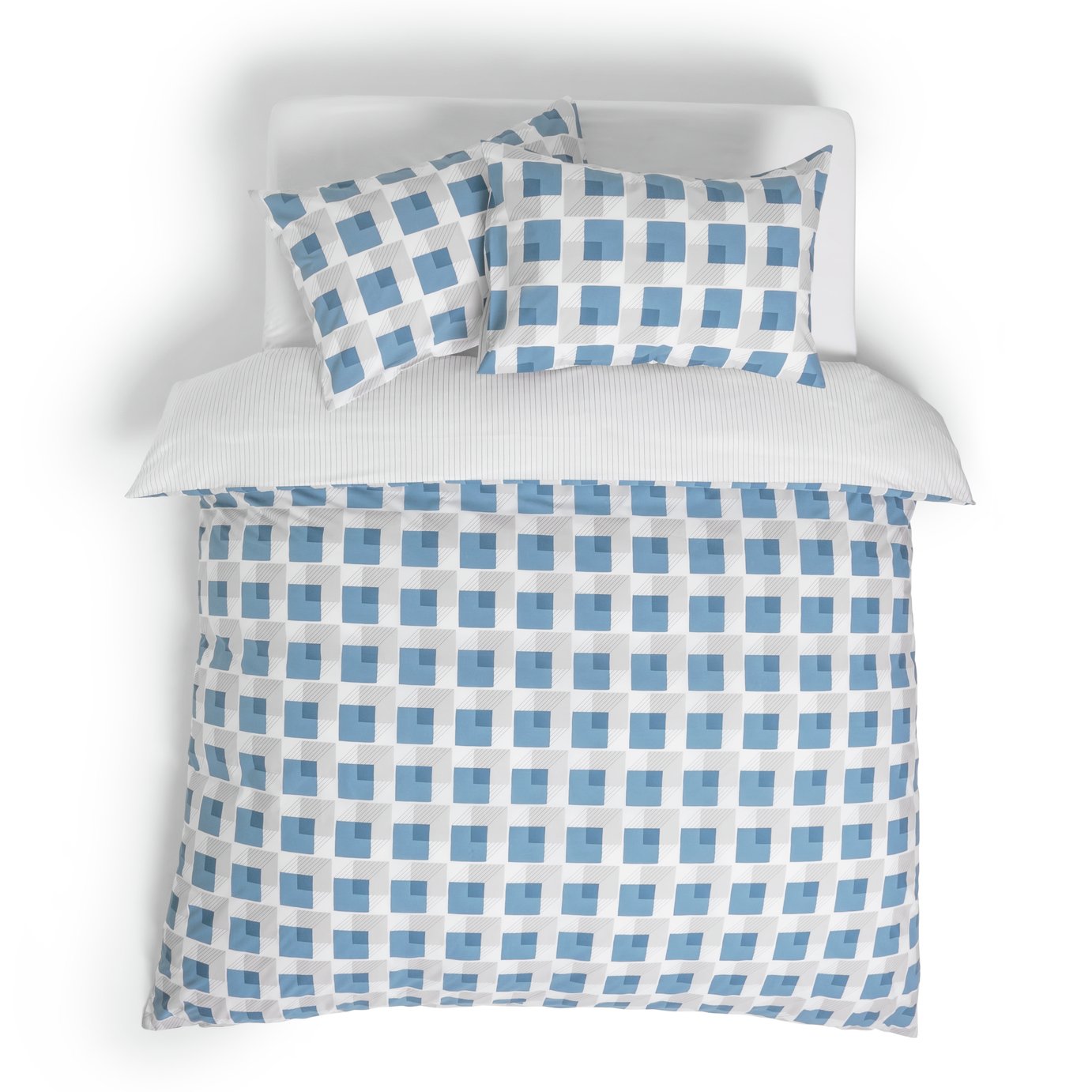 Cool, contemporary bedrooms deserve stylish bedding. Featuring a geometric print in blue, white & grey, the bedding set will brighten up any room. Crafted from a polyester & cotton blend, you can machine wash & tumble dry your set with ease. So easy to care for, you wont even need to iron it. When you fancy a change, simply flip over for a cool contrast. Set