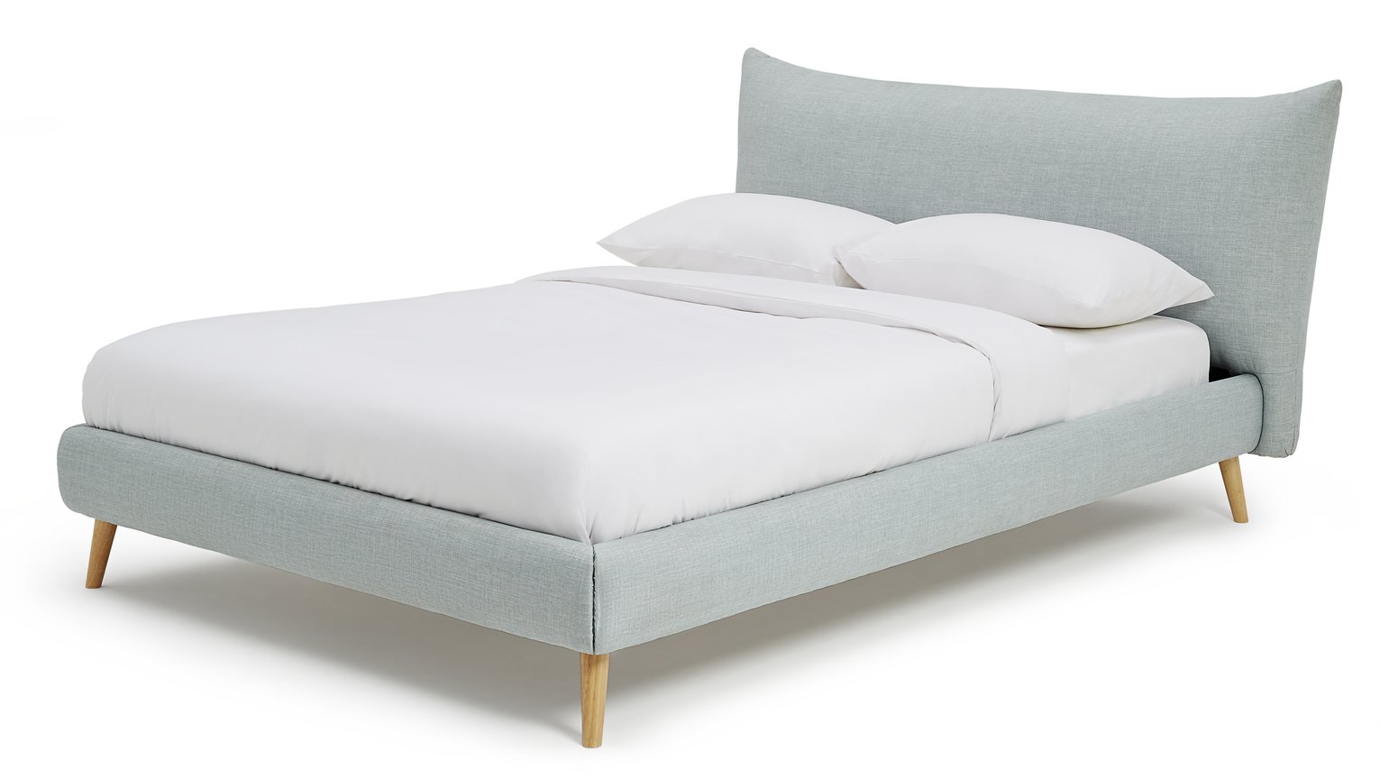 Tired&63; Sink into the pillowy comfort of the Marshmallow bed frame for a totally dreamy nights sleep. Upholstered in a soft woven fabric it has an oversized headboard filled with squidgy loveliness. The side panels are also padded & upholstered for a sumptuous look. Available in a range of sizes to suit any bedroom, the Marshmallow is bursting with contemporary style & sanctuary softness, perfect for a weekend lie-in or a boxset binge. Oversized squidy headboard gives this bed a soft, comfortable, relaxing look. Part of the Marshmallow collection. Made from polyester. Fabric frame. Base with sprung wooden slats. Size W166.5, L220, H95cm. Height to top of siderail 32.5cm. 15cm clearance between floor & underside of bed. Weight 54kg. Maximum user weight 200kg. Self-assembly