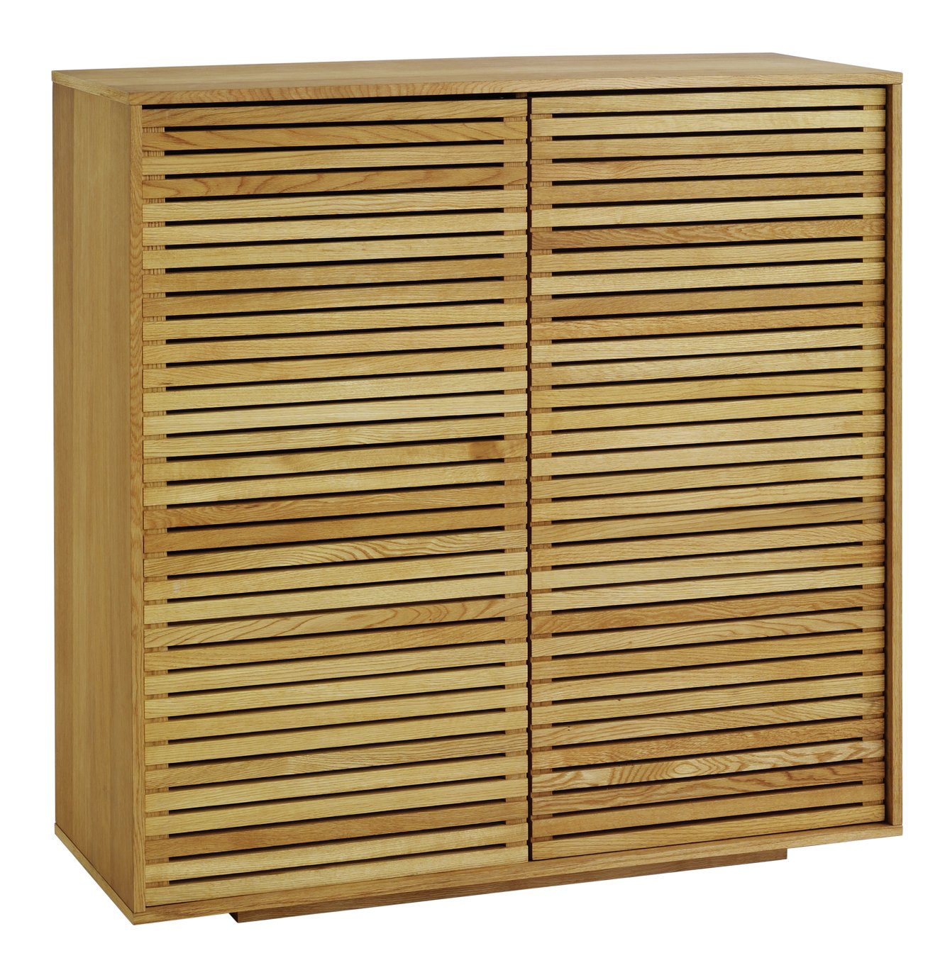 Crafted from solid oiled oak & oak veneer, the Max 2 door cupboard with slatted doors adds warmth & character to a room. The combination of slatted doors & hidden plinth give a light appearance while providing generous storage space for any living or dining room. Designed by & exclusive to Habitat, the slatted fronts of the Max range were inspired by louvred doors. Part of the Max collection. Size H 119.4, W 121.4, D45cm. 2 doors. 1 fixed shelf. 1 adjustable shelf. Weight 75kg. Self-assembly