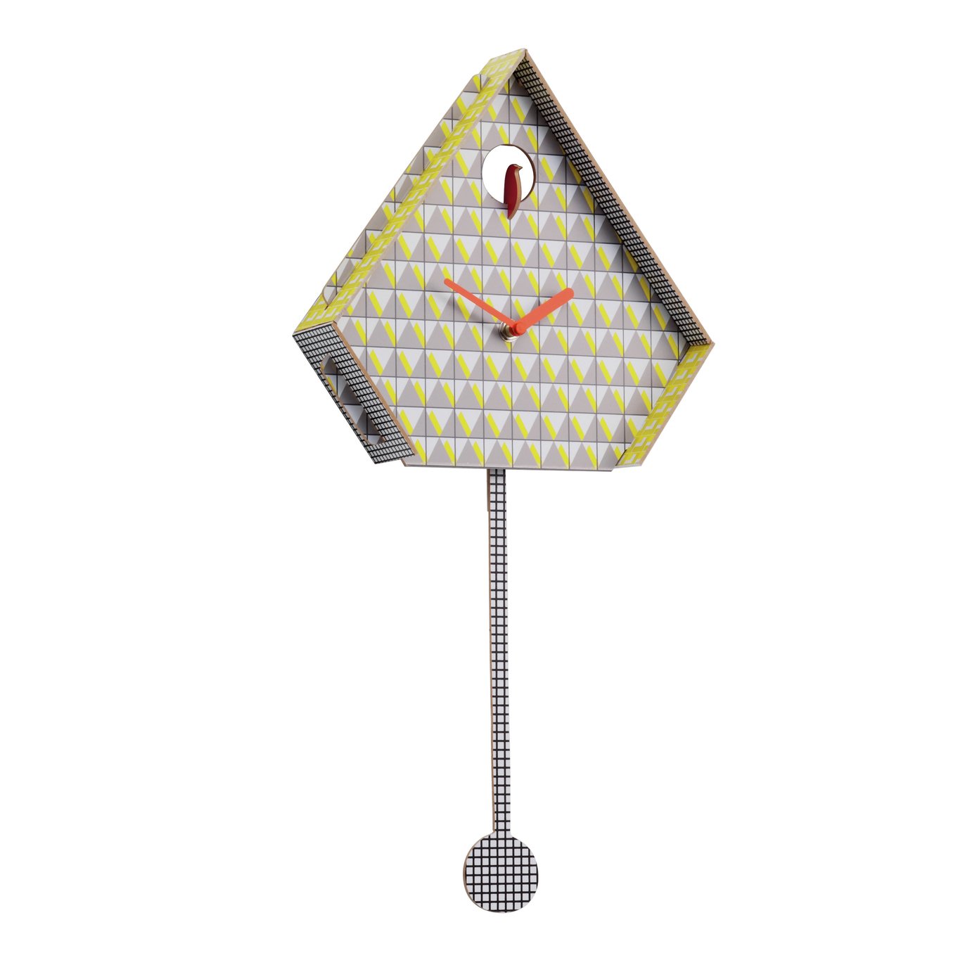 A witty take on the traditional design, the Miu yellow patterned cuckoo wall clock is decorated with a colourful vintage pattern & has a perching bird & a swinging pendulum. Size H 50, W 26, D5cm. Requires 1x AA batteries (not included). Manufacturers 1 year guarantee. EAN: 5053721696538.