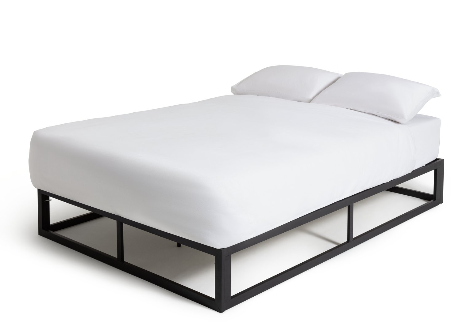 Take it easy. Super quick to set up, this screwless Platform bed goes from zero to hero in only a matter of minutes. Dont be fooled though. Its still got comfort & style built in. Sprung wooden slats offer support & stability, while the low-profile frame gives you that low-down industrial vibe youve been looking for. Theres enough space under it to pop an underbed basket too. Ready&63; Get, set, chill. Part of the Platform collection. Made from metal. Metal frame. Base with sprung wooden slats. Non-adjustable bed. No storage. Size W126, L196, H28cm. Height to top of siderail 28cm. 27.5cm clearance between floor & underside of bed. Weight 21.5kg. Maximum user weight 200kg. Self-assembly