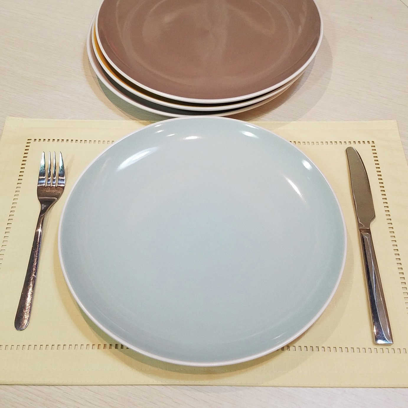 Plates to impress&33; This stunning set of four, full size dinner plates set the perfect vibe for cool country dining. Crafted from hardwearing stoneware in a smooth mustard, grey, blue & terracotta glaze theyre sturdy enough to pop in the dishwasher or the microwave. The heavy glaze protects your plates from chipping so use them every day. & dinner stays piping hot because stoneware keeps food warm for longer. Thats cool&33; Stoneware. Dishwasher safe. Microwave safe. Dinner plate diameter 27.5cm. EAN: 5054331163656. Manufacturers 1 year guarantee.