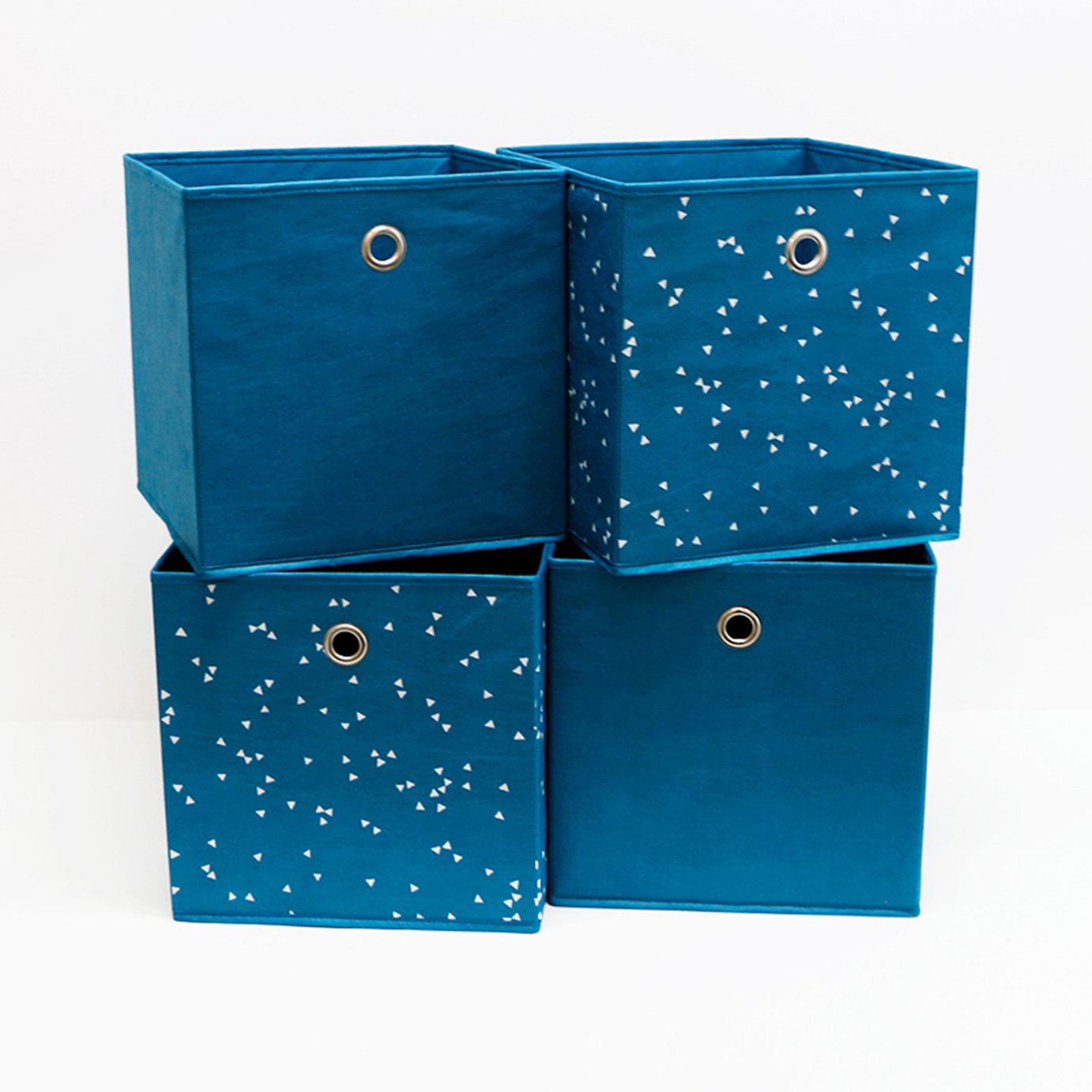 Handy open storage boxes are just the ticket for storing seasonal clothes, shoes, accessories & linens. These 4 square boxes in blue & white are designed to fit perfectly with the Argos Home Squares storage unit, but you can use them just about anywhere. Store them in your wardrobe, under your bed, in a divan drawer or elsewhere. They come flat packed, so you can simply tuck them away when not in use. Folds for storage. Box size H32.5, W32.5, D37cm. Small box size H32.5, W32.5, D37cm. Large box size H32.5, W32.5, D37cm. Weight 1.8kg. Minimal assembly. General Information: Manufacturers 1 year guarantee. EAN: 9403500000.