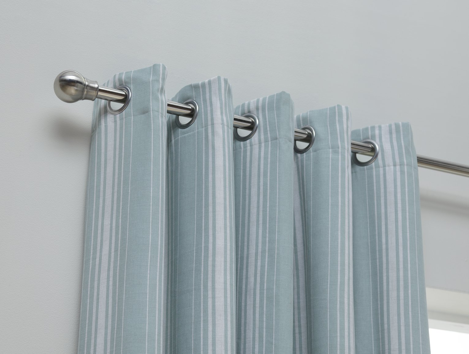 Swoosh. Transform your room & dress your window with our duck egg blue stripe curtains. Eye-catching & stylish theyll certainly lift the mood of your interior. Ready made & easy to hang in soft folds, these are lovely drapes. The eyelet header is a popular look, neat & uncomplicated & makes them easy to open & close. Even better they are 100% cotton & fully lined so easy to care for. Our design can be mixed & matched with a multitude of colours & styles. So with a fresh new set of curtains why not add to the new look&63; Grab a ceramic lamp, swanky vase, or bold rug to create a real wow. Features Fully lined. Made from