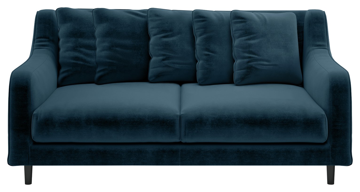 With elegant curved arms & deep seated cushions, the SWIFT 3-seater piave velvet ink blue sofa gives a nod to a mid-century design. Upholstered plump, foam & feather filled seat cushions & scattered feather filled back cushions offer your body a high level of support as well as a sink into comfort feeling. A detailed Stitch runs across the curved arms that add to the design & gives the right amount of opulence. Perched on Dark oak legs, the grain of the wood compliments the sofa in luxurious ways. Upholstered in our most luxurious velvet, this cotton blend fabric has a deep pile so is extremely soft to touch while also being hardwearing. Swift is also available in various sizes, colours & fabrics. Part of the Swift collection.