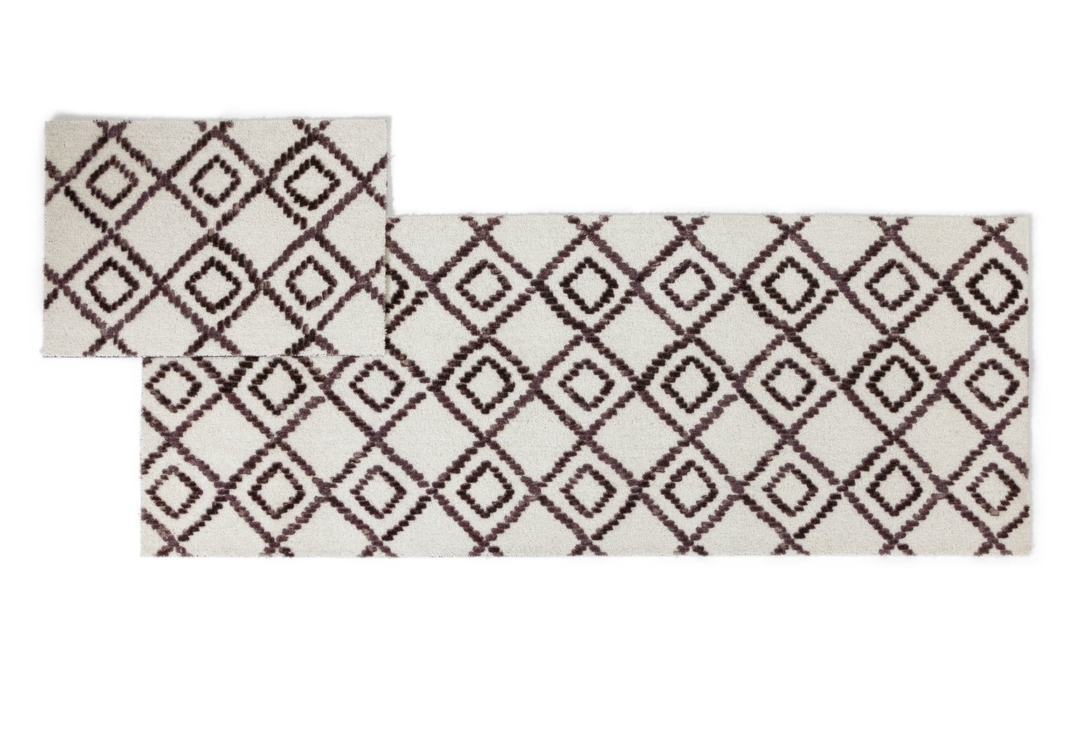 Make an entrance&33; This matching geo print door & hallway runner set offers a warm welcome to your guests. Works well with a natural Boho decor. The machine washable fabric absorbs moisture & traps dust, so its easy to keep your hall fresh as a daisy too. Youre welcome&33; made from 100% nylon pile with latex backing, it keeps dust & dirt at bay. Mat (W40cm X L57cm XD0.8cm). Size L150, W57cm. 30C delicate wash. Not suitable for tumble drying. Made from nylon.